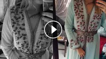 Caftan deux pièces en crepe de soie brodé de motifs géométriques en sequins et perle incrusté des swarovski ,