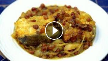 5- Cover and cook on medium heat for 40 minutes or until the onions are soft and the fish is done.