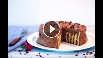 2- قطع الكعكة إلى أشرطة بعرض 5 سنتيمتر، طوليا.