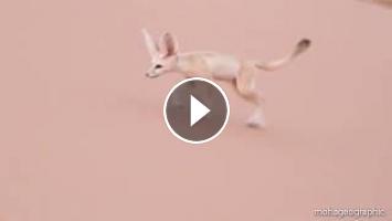 Fennec Fox cubs playing in their natural habitat at the sand dunes of Merzouga, Morocco.