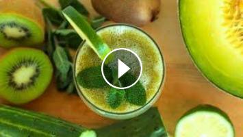peel and cut the honeydew, kiwi, and cucumber. Mix in a blender along with fresh lime juice, honey, and mint leaves. Serve cold.